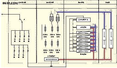 通信机房对消防问题也是机房设计主要点之一。对于通信机房时消防时空调送风处理问题规范中都无明确的规定。此问题设计中大多根据民用建筑采暖通风技术措施规定,切断空调通风系统防止火势通过通风管蔓延。笔者认为此规范不一定完成适应于通信工程。因为民用工程中主要消防时,所有非消防电源均被切断,而通信工程采用的是不间断供电,消防时大多正常通电运行,而且大多设备还正常。下面首先看看通信机房设备的供电情况(如下图):
