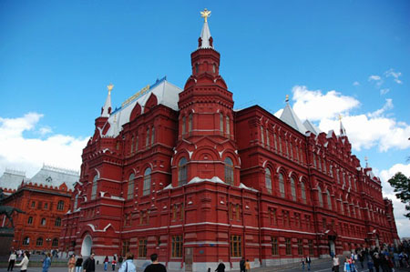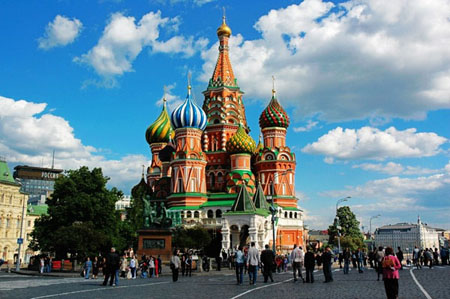 瓦西里大教堂是俄国恐怖沙皇伊凡雷帝为庆祝1552年6月攻占喀山城而建。它座落在在红场一角,这座有着像洋葱一样圆顶的大教堂,被誉为“一个石头的神话”。富于创意的形式、色彩与精妙绝伦的结构完美结合,使这座教堂令人叹为观止。伊凡雷帝命令建造的这座教堂在1559年落成,从此,这座无所匹敌的建筑成了俄罗斯的象征。这座风格宏伟的建筑,要体现的是俄罗斯人战胜鞑靼人的豪情,因为它的存在,人们走过广场,都会回忆起战胜入侵者的光荣。
