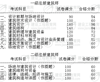2008年全国一、二级注册建筑师考试合格标准如下: