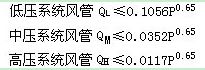 式中QL、、--系统风管在相应工作压力下,单位面积风管单位时间内的允许漏风量[