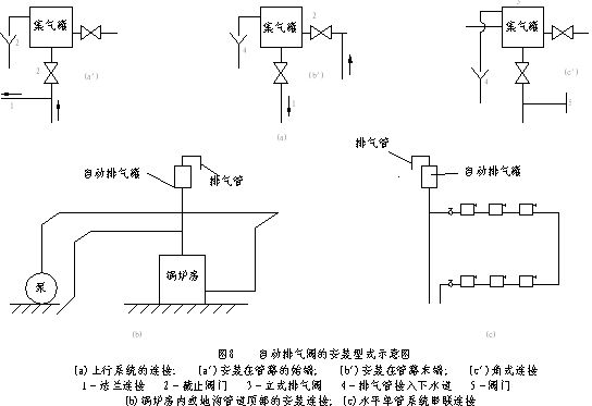 (3)自动排气阀的安装方法及技术要求:应根据下列要求安装(见图8)。