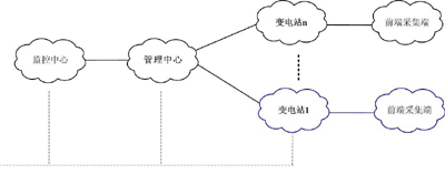 各变电站通过2M数字通道与管理中心连接,在管理中心对系统集中管理。系统中的各监控中心通过电力网与管理中心连接,监控中心设置监控主机,通过授权实现对全部或部分变电站的监控。