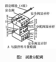 (3)图2中远离搅拌料斗(A面)的四个接口,一定不能与滑阀上的任何一个润滑点相接,因此四个口无安全显示杆,当堵塞时无法作出显示。