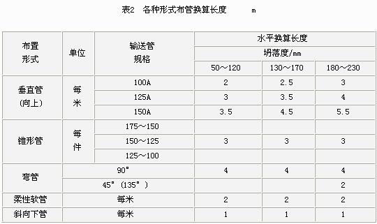 应尽量减少使用弯管,磨损严重的管子应尽量布在离混凝土泵较远的位置,以免压力过高爆管。各种形式布管换算为水