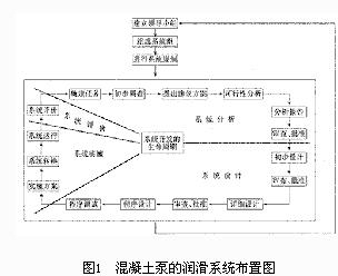 滑阀润滑系统主要由润滑脂箱、滤芯、润滑脂泵、阻尼器、润滑脂分配阀及润滑脂管路等组成。其中关键部件是润滑脂分配阀。如图1为IPF85B、HBT60两种型号混凝土泵的润滑系统布置图。