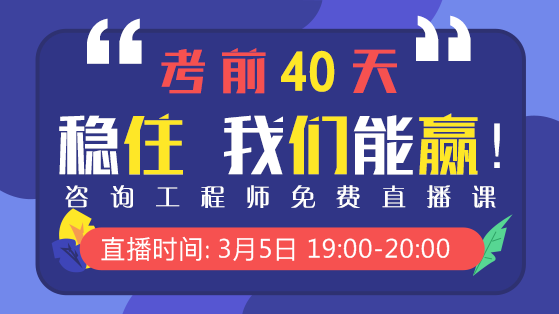 本次课程采用直播的形式,并且面向所有2019年咨询工程师考生们免费开放,快点把这个好消息告诉身边的小伙伴们吧!