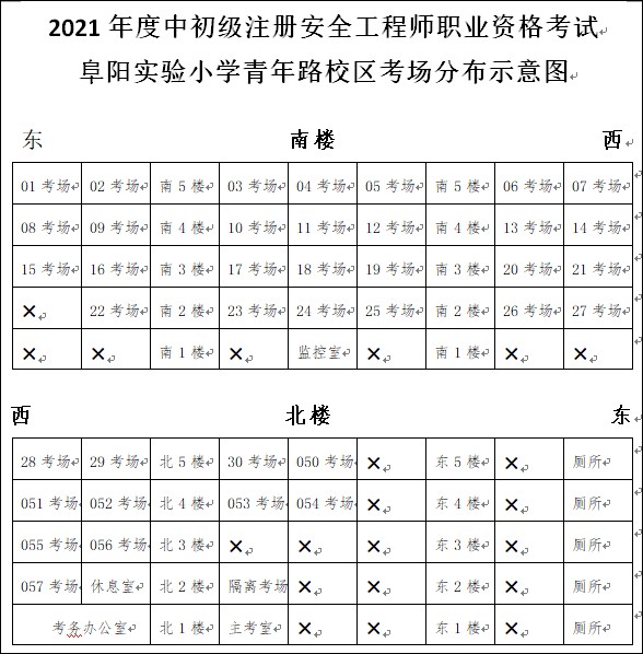 注意:(1)1-30考场为中级注册安全工程师考试考场;50-57考场是初级注册安全工程师考试考场。