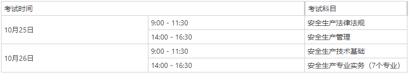 2025年度中级注册安全工程师职业资格考试时间安排表