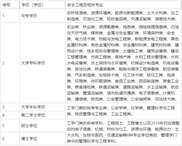 (二)具有安全工程及相关专业大学本科学历,从事安全生产业务满3年;或具有其他专业大学本科学历,从事安全生产业务满4年。