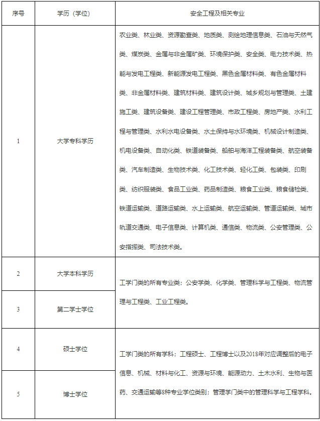 1.具有安全工程及相关专业大学专科学历,从事安全生产业务满5年;或具有其他专业大学专科学历,从事安全生产业务满6年。