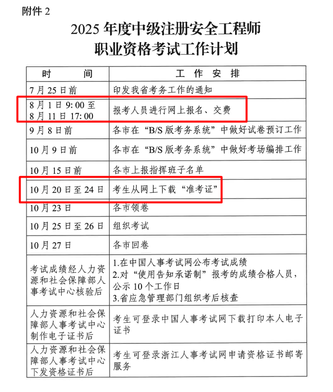 - · 湖南2025年中级注册安全工程师考务工作通知 8月1日报名开始