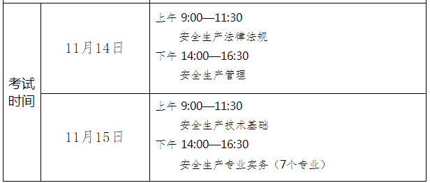 安全工程师考试时间及科目