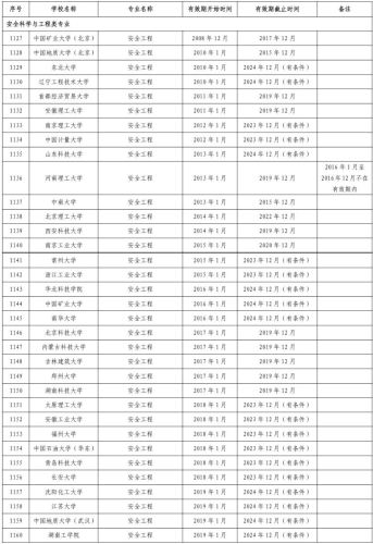 通过工程教育认证专业名单(安全科学与工程类专业)