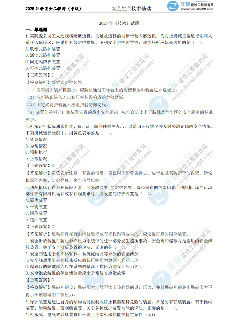 2025年中级安全工程师《生产技术》考试结束,考生们最关心的肯定是这一科目试题及答案。建设工程教育网考后会依据考生反馈,及时汇总中级安全工程师《生产技术》的试题及答案,期望能给各位考生提供帮助!