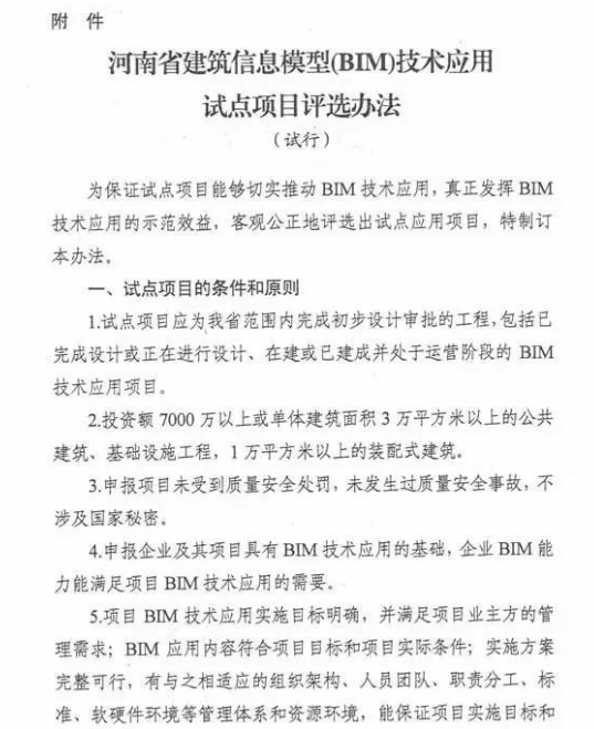 河南省住建厅关于转发《河南省BIM技术应用试点项目评选办法》的通知: