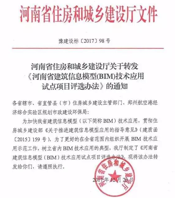 河南省住建厅关于转发《河南省BIM技术应用试点项目评选办法》的通知