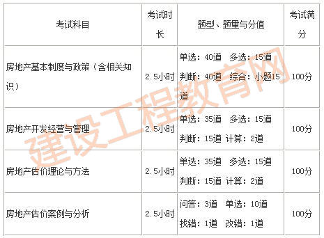 建设工程教育网回复:房地产估价师考试时长各科目都是2.5个小时。