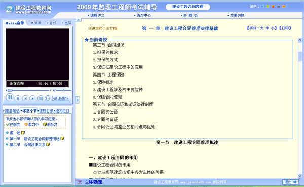 网校的视频、音频课件采用目前世界上最先进的网络流媒体技术制作而成,建议您下载安装最新版本的Real、Media Player、Flash播放器后再观看和收听本网站所有课件的视频影像和声音。