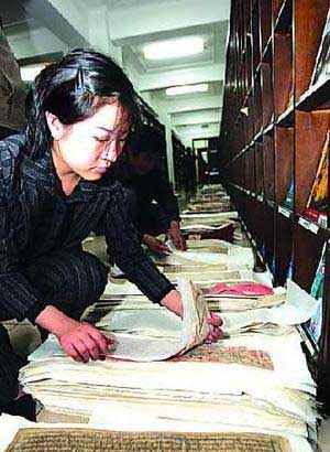 为保证受损文物的安全,民族宫19日专门腾出一个35立方米的库房,建成冷库,受损的线装古籍、少数民族文字的报刊、蒙文古籍等已全部入冷库。而其他2万多册被水浸泡的文献也已经被送入冷库进行“冷藏”防霉处理。