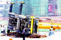 1日晨,地铁5号线樱花下街站的施工现场发生了塔吊倒塌事故。一名过路的骑车人被当场砸死。