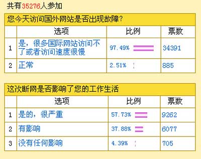 除此之外,一些国际网站无法访问;有外企公司员工无法与国外同事或客户沟通……“若没有分别痛苦时刻,你就不会珍惜我。”昨天,受海缆中断影响的互联网产品,用这句老歌词,让大多数人感觉到了其存在的意义。
