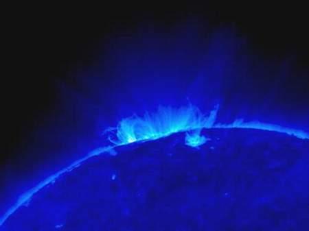 12月20日,美国宇航局10月25日发射的孪生飞船于12月4日传回首批太阳图片。飞船采用不同色素测量了太阳不同地方的温度,图片显示太阳不同地方存在很大的温度差异,蓝色光环表示温度为一万摄氏度。(NASA官方网站)