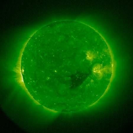 12月20日,美国宇航局10月25日发射的孪生飞船于12月4日传回首批太阳图片。飞船采用不同色素测量了太阳不同地方的温度,图片显示太阳不同地方存在很大的温度差异,绿色光环表示温度为一万五千摄氏度。(NASA官方网站)
