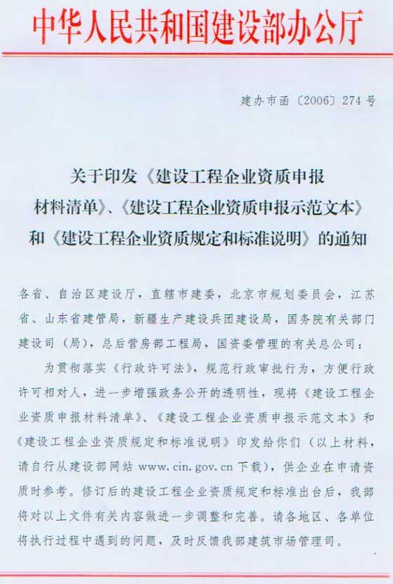 关于印发《建设工程企业资质申报材料清单》、《建设工程企业资质