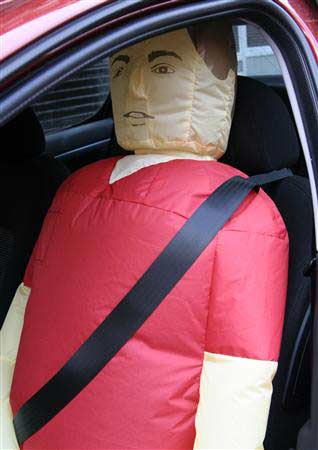 这种充气人于周二在英国市场上问世,目的是使需要夜晚独自驾车的女性感觉不那么紧张。