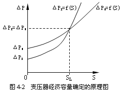 由图4-2可知,临界经济容量的意义是:当按实际负载需用变压器的容量S> SL时,则选用容量大的变压器;反之,S<SL时,则选用容量小的变压器。