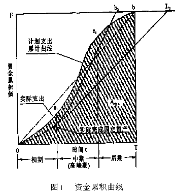 图1中还画出了实际支出曲线,以点虚线表示。把实际支出曲线和实际完成固定资产曲线加以比较,可以了解工程成本总的状况。若点虚线在虚线上面,说明实际成本超过了预算成本。反之,实际成本低于预算成本。若两者出现明显差异,要对其差异进行分析研究,并在控制成本的同时,对施工采取正确的措施。必须指出的是,过去常常把“实际支出”当成“完成投资”,这是一种十分有害的误解。结果把花钱越多误认为完成工程量越大,致使成本失去控制,投资一再增加,造成重大浪费。