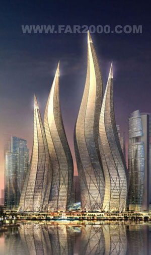 四座大厦从54层到97层不等,汇集在一起构成一座舞蹈般的雕塑形象,看上去很像是烛火在闪动。大厦象征着迪拜的逐步演变和创新成果。建筑表达方面,其成熟的美学和结构工程方面的创新是任何现代建筑都无法比拟的。