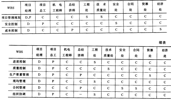某集团公司即将承接一个大型项目,综合考虑各方面因素,在设立项目经理部时采用矩阵型组织结构,项目经理采用矩阵图法落实了项目经理部成员或有关部门的主要责任,形成了责任分配矩阵。