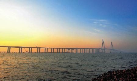 中新网6月26日电 杭州湾跨海大桥将于26日举行全线贯通仪式,大桥全长36公里,建成后将缩短宁波至上海间的陆路距离120公里,是国道主干线——同三线跨越杭州湾的便捷通道。