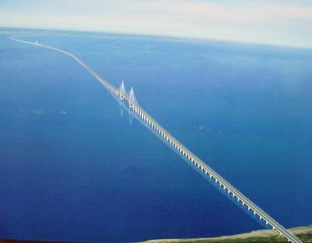 资料图:杭州湾跨海大桥效果图 来源:东方网