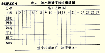 (3)将粘土斜墙填筑流水线进度安排画成横道图,如表2.