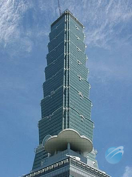 台北101,英文名TAIPEI 101,前名“台北国际金融大楼”,位於台北市信义计画区南侧,世贸中心旁,总高508M,为一座多功能101层摩天大楼。TAIPEI 101为全球首创多节式摩天大楼,第27层至第90层共64层中,每8层为一节,一共8节,每层外墙均外斜7°,加上处处可见的传统风格装饰物,有节节高升,花开富贵的意象。