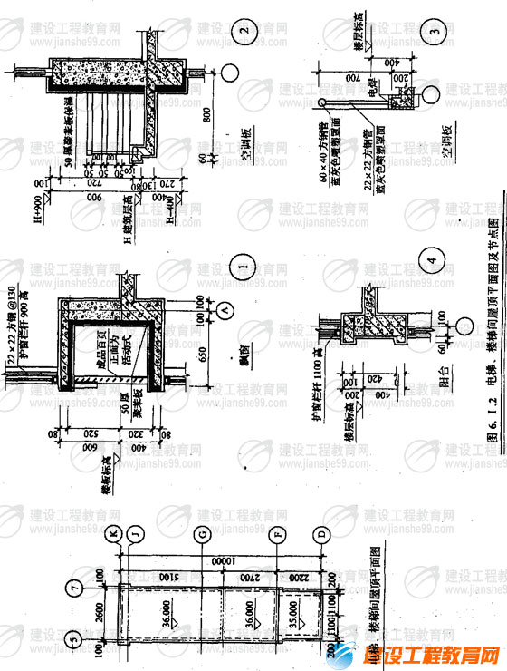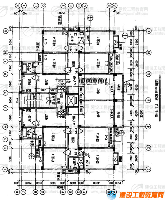 某小高层住宅楼建筑部分设计如图6.I所示,共12层。每层层高均为3米,电梯机房与楼梯间部分凸出屋面。墙体除注明者外均为200mm厚加气混凝土墙.轴线位于墙中。外墙采用50mm厚聚苯板保温。楼面做法为20mm厚水泥砂浆抹面压光。楼层钢筋混凝土板厚100mm,内墙做法为20mm厚混合砂浆抹面压光。为简化计算首层建筑面积按标准层建筑面积计算.阳台为全封闭阳台,⑤和⑦轴上混凝土柱超过墙体宽度部分建筑面积忽略不计,门窗洞口尺寸见表6.I.1,工程做法见表6.I.2.