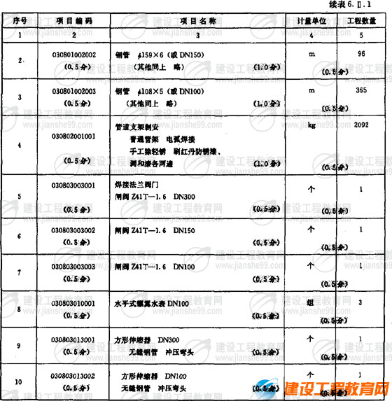 1.将各项管道和管道支架制作安装清单项目工程量的计算过程,分别写在答题纸相应位置。根据《建设工程工程量清单计价规范》的有关规定,编制如图6.Ⅱ所示管网系统的分部分项工程量清单项目,将结果填入答题纸表6.Ⅱ.1“分部分项工程量清单表”第2、3、4、5栏内。