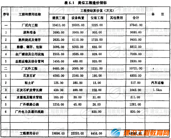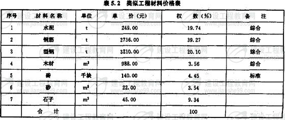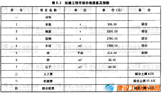 某企业拟建一条生产线。设计使用同规模标准化设计资料。类似工程的工程费用造价指标见表5.1;类似工程造价指标中主要材料价格表见表5.2.拟建工程当地现行市场价格信息价格及指数见表5.3.