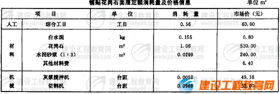 2.编制花岗石墙面工程的工程量清单综合单价分析表,列式计算并把计算结果填入答题纸表1.1中。