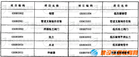 管网部分分部分项工程量清单项目的统一编码见下表: