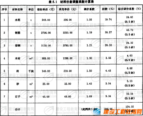 根据已有资料和条件,在答题纸表5.1中计算建筑工程费用中的材料综合调整系数,计算拟建工程建筑工程费用。