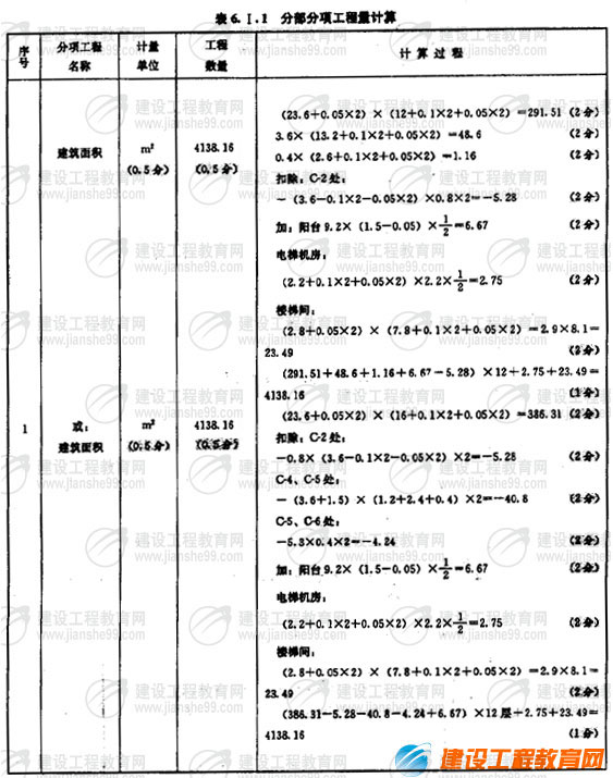 将计算过程、计量单位及计算结果填入答题纸表6.I.1“建筑面积计算”。