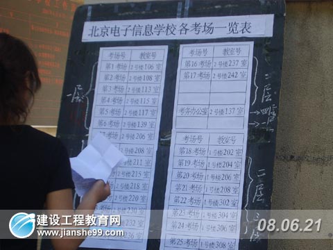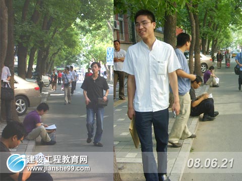 今年的北京,下过几场大雨,所以夏天比往年要来得晚一些。但是经历了昨天的闷热天气之后,今年我们迎来了一个艳阳高照的日子。今天是夏至,最高气温32度,但是早上的北京还没有那么的炎热,考生们也都个个精神抖擞,信心百倍,通过我们的采访也看得出考生的心情非常好。早上9点开始考试,考生们7点多就已经在门口等待。今年的考试管理非常严格,考生需提前一个小时持准考证入场。为了赶早和考生交流,建设工程教育网记者早早来到位于德胜门外的北京市电子信息学校的考点,看到考生们在交流和进行最后的冲刺准备,看得出来大家对这次的考试信心很足。8点40,考生们陆续走进考场,一路走来,谈笑风声,好象大家都忘记了今天要考试,也许是大家都复习得很到位的原因。通过网校记者和学员们的交流,发现大家对二级建造师的考试的热情非常高,而且对考试也很有把握,今年二级建造师的教材和大纲基本没有变动,学员们的备考也很充分,对这次考试信心十足,在记者的祝福下,考生们也面带笑容地步入考场。与此同时,大部分考生还非常感谢建设工程教育网的辅导,觉得辅导对自己帮助很大,增加了通过的信心,身为网校一员的记者,自己也为他们感到高兴,看着他们远去的背影,默默地为他们送去祝福,愿他们“旗开得胜,马到成功!”