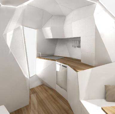 Mehrzeller概念车是一种定制的可移动居住空间,利用以顾客为导向的软件包构成了基本设计,参考数据包括居住者人数、衣橱空间、厨房设计,甚至包括性别。一旦基础需求考虑到了,内部设计师就将创造一个别致的居住空间。