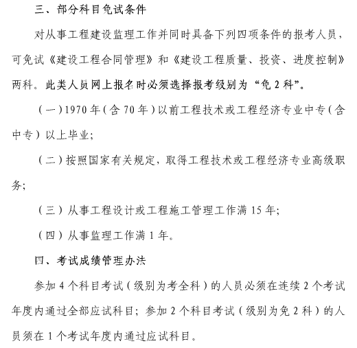 2018年上海监理工程师部分科目免试条件