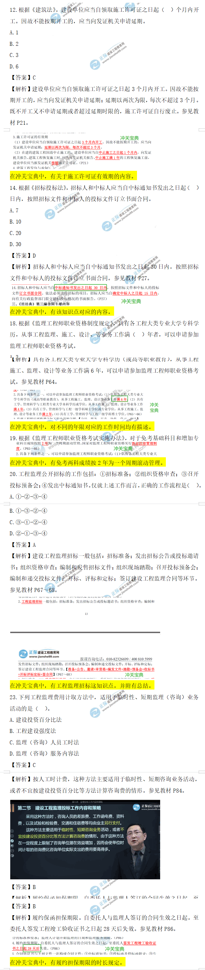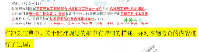 在冲关宝典中,对于监理服务期限有重点标注。