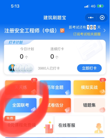 扫码进入建筑刷题宝-选择安全工程师-全国联考-提前预约,届时入口开放可以直接进入。