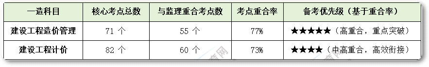 (一)建设工程造价管理:高重合度科目,借力监理基础高效突破